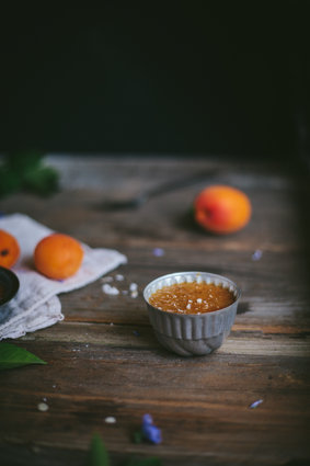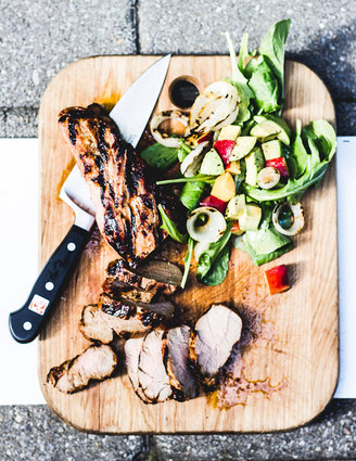 caramelized peach and cherry salad with corn, basil and buckwheat
